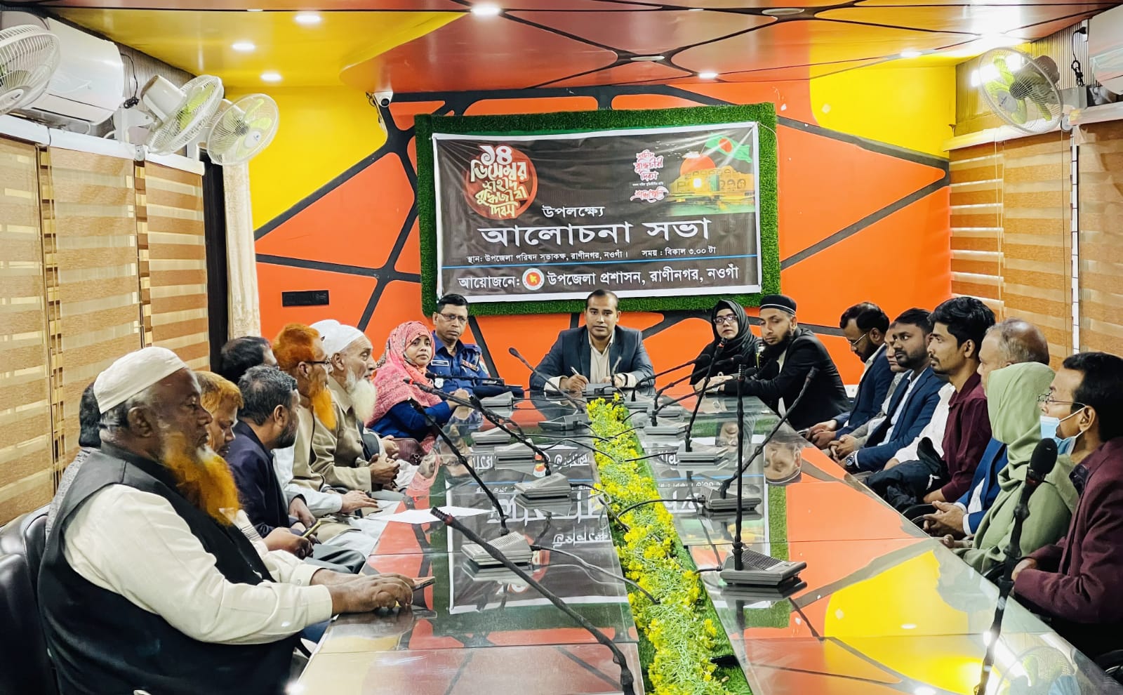 শ্রী মনোরঞ্জন চন্দ্র(রানীনগর)নওগাঁ প্রতিনিধি:নওগাঁর রাণীনগরে শহীদ বুদ্ধিজীবী দিবস পালিত হয়েছে। এ উপলক্ষে রোববার বিকেলে উপজেলা প্রশাসনের আয়োজনে উপজেলা পরিষদ সভাকক্ষে আলোচনা সভা অনুষ্ঠিত হয়।