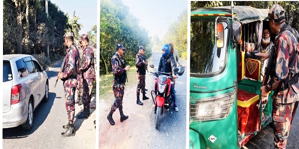 এদিকে লেফটেন্যান্ট কর্নেল গোলাম কিবরিয়া বলেন, সীমান্ত এলাকায় নিয়মিত টহলের বাইরে ২০টি অতিরিক্ত টহল টিম কাজ করছে। প্রতিটি বিওপির অধীনে তিন রাস্তার মোড়সহ গুরুত্বপূর্ণ পয়েন্ট গুলোতে চেকপোস্ট বসানো হয়েছে। তারা মোটরসাইকেলসহ বিভিন্ন যানবাহনে তল্লাশি কার্যক্রম চালাচ্ছে।
