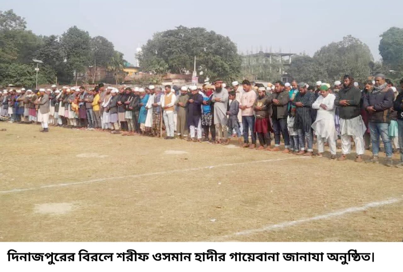 এম, এ কুদ্দুস, বিরল (দিনাজপুর) প্রতিনিধি। দিনাজপুরের বিরলে ইনকিলাব মঞ্চের মুখপাত্র শরীফ ওসমান হাদীর গায়েবানা জানাযা অনুষ্ঠিত হয়েছে।শনিবার দুপুর দুইটায় বিরল সরকারি পাইলট মডেল উচ্চ বিদ্যালয় মাঠে এ গায়েবানা জানাযা অনুষ্ঠিত হয়।