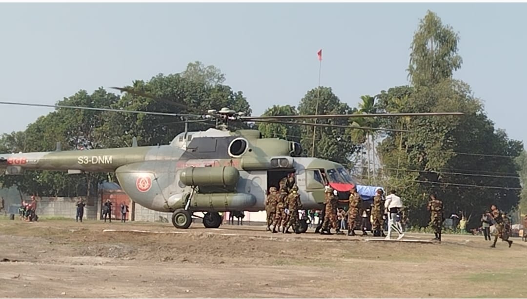 সুদানে শান্তি মিশনে নিহত কুড়িগ্রামের দুই সেনা সদস্যের লাশ তাদের গ্রামের বাড়িতে পৌঁছালে এক আবেগঘন পরিবেশের সৃষ্টি হয়। রোববার (২১ ডিসেম্বর) দুপুরে দুই সেনা সদস্যের লাশ সামরিক হেলিকপ্টারে জেলার উলিপুর উপজেলান হেলিপ্যাডে নামানো হয়।