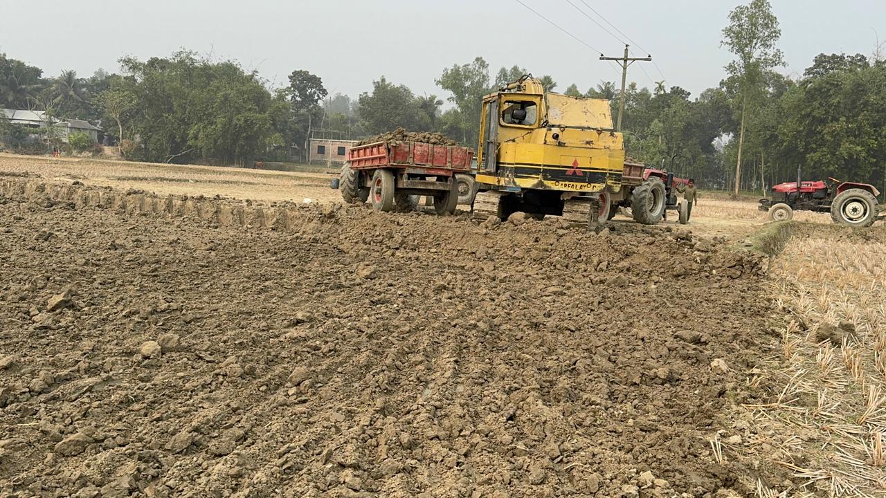 ধনবাড়ীর পাইস্কা ইউনিয়নের হারিনাতেলীতে দুই পয়েন্টে ফসলি জমির মাটি কাটার অভিযো…