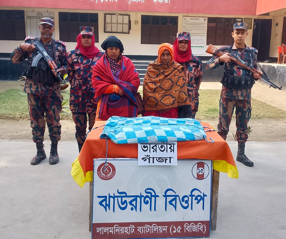 গোয়েন্দা সূত্রে বিজিবি জানতে পারে চোরাকারবারীরা সীমান্ত দিয়ে মাদক পাচার করবে। এমন তথ্যানুযায়ী, ০৬ জানুয়ারি ২০২৬ তারিখ সকাল আনুমানিক ০৯:৫০ মিনিটে ঝাউরানী বিওপি’র আওতাধীন দক্ষিণ ঝাউরানী (থানা-হাতিবান্ধা, জেলা-লালমনিরহাট) নামক স্থানে বিজিবি’র টহলদল বিশেষ অভিযান পরিচালনাকালীন সময় সন্দেহজনক ব্যক্তিদেরকে আসতে দেখে বিজিবি টহলদলের সদস্যরা তাদের গতিরোধ করে এবং মহিলা বিজিবি সদস্যদের মাধ্যমে তল্লাশি চালিয়ে (১) নামঃ রোমিছা বেগম(৪০) এবং (২) আছিয়া বেগম(৬০) উভয়ের গ্রামঃ উত্তর ঝাউরানী, পোষ্টঃ ভেলাগুড়ি, থানাঃ হাতিবান্ধা, জেলাঃ লালমনিরহাট এর শরীরে বিশেষভাবে ফিটিং অবস্থায় বহনকৃত ০৫ কেজি ভারতীয় গাাঁজা উদ্ধার করা হয়।