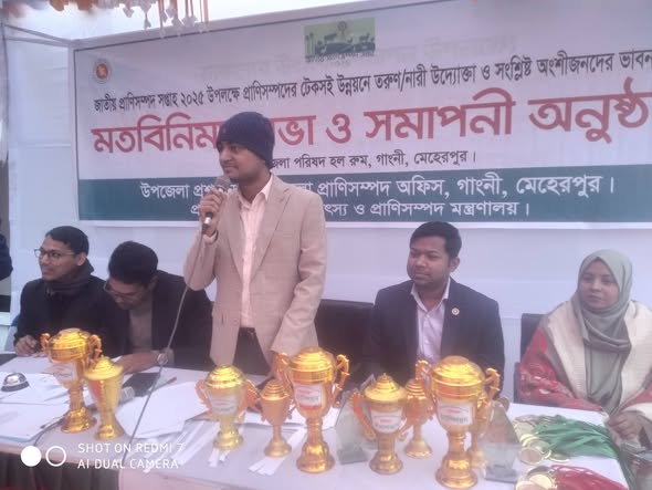 তারুণ্যের উৎসব উদযাপনে প্রধান অতিথি হিসেবে ভলিবল টুর্নামেন্টসহ অন্যান্য ইভেেেন্টর সমাপনী ও পুরস্কার বিতরণী অনুষ্ঠানে উপস্থিত ছিলেন গাংনী উপজেলা সহকারি কমিশনার (ভ’ূমি) কর্মকর্তা নাবিদ হোসেন ।