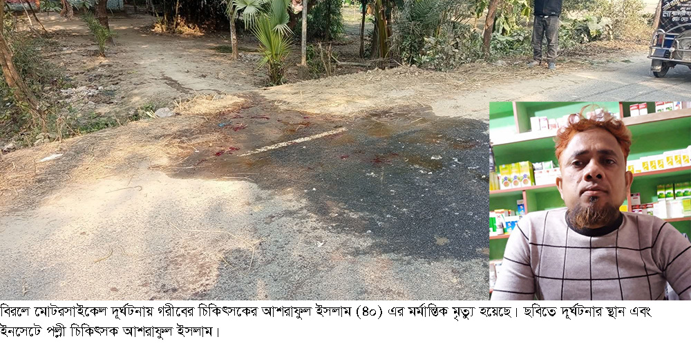 বিরলে মোটরসাইকেল দূর্ঘটনায় এক পল্লী চিকিৎসকের মৃত্যু। আহত-১।