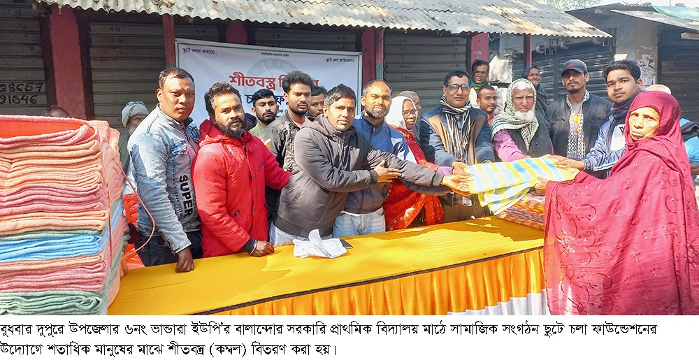 বুধবার দুপুরে উপজেলার ৬নং ভান্ডারা ইউপি’র বালান্দোর সরকারি প্রাথমিক বিদ্যালয় মাঠে সামাজিক সংগঠন ছুটে চলা ফাউন্ডেশনের উদ্যোগে এ শীতবস্ত্র (কম্বল) বিতরণ করা হয়।