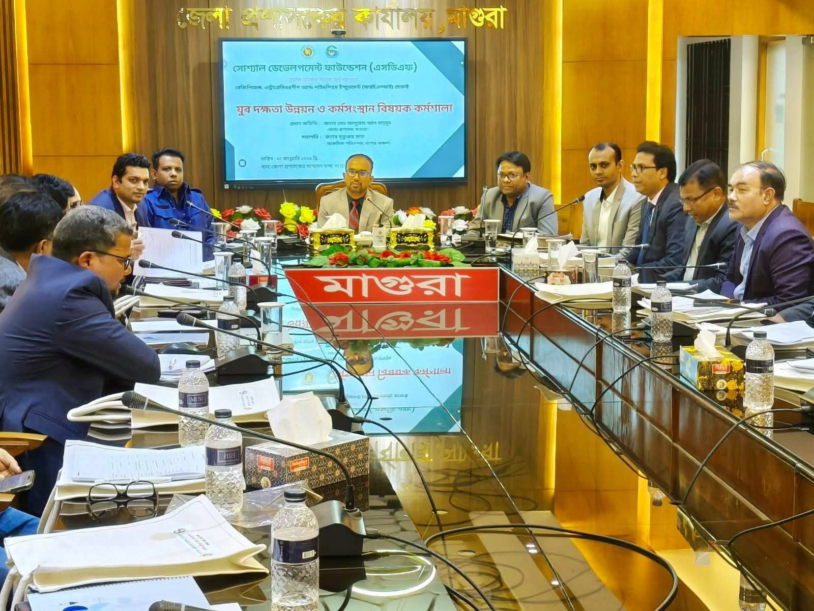 মোঃ সাইফুল্লাহ, মাগুরা প্রতিনিধি: এসডিএফ যশোর অঞ্চল এর আওতাধীন মাগুরা জেলা অফিসের আয়োজনে যুব দক্ষতা উন্নয়ন ও কর্মসংস্থান বিষয়ক কর্মশালা মাগুরা জেলা প্রশাসকের সম্মেলন কক্ষে অনুষ্ঠিত হয়েছে। মঙ্গলবার বিকেলে অনুষ্ঠিত উক্ত কর্মশালায় প্রধান অতিথি হিসেবে উপস্থিত ছিলেন, মো: আব্দুল্লাহ আল মাহমুদ জেলা প্রশাসক মাগুরা। এসডিএফ যশোর অঞ্চলের আঞ্চলিক পরিচালক মৃত্যুঞ্জয় সাহার সভাপতিত্বে আরো উপস্থিত ছিলেন অতিরিক্ত জেলা প্রশাসক (সার্বিক) আব্দুল কাদের, অতিরিক্ত জেলা প্রশাসক (রাজস্ব), বিভিন্ন সরকারি অধিদপ্তরের উপপরিচালকবৃন্দ, প্রশিক্ষণ ও লিংকের প্রদানকারী প্রতিষ্ঠানের প্রতিনিধিবৃন্দ, মাগুরা প্রেস ক্লাবের সভাপতি অধ্যাপক সাইদুর রহমান, আঞ্চলিক ব্যবস্থাপক আইসিবি, যুব ও কর্মসংস্থান অ্যান্ড জিএ, আঞ্চলিক ব্যবস্থাপক এমইএল এন্ড এমআইএস, জেলা ব্যবস্থাপক মাগুরা, সকল জেলা কর্মকর্তা ও বিভিন্ন গ্রাম সমিতি থেকে উপকারভোগী যুব সদস্যগন সহ প্রমূখ। কর্মশালার শুরুতে স্বাগত বক্তব্য ও কর্মশালার উদ্দেশ্য বিষয়ে আলোচনা করেন আঞ্চলিক পরিচালক মৃত্যুঞ্জয় সাহা।