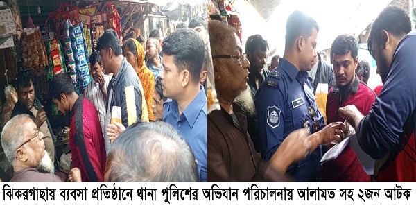 আফজাল হোসেন চাঁদ, ঝিকরগাছা : যশোরের ঝিকরগাছা থানা পুলিশের বিশেষ অভিযানে পৌর সদরের একটি ব্যবসা প্রতিষ্ঠান থেকে মাদক সহ দুইজন আটক। উক্ত ঘটনাকে কেন্দ্র করে একজনের ভ্রাম্যমান আদালতে জেল ও জরিমানা ও অপর জনকে নিয়মিত মামলা রুজি হয়েছে। আটককৃতরা হল- পৌর সদরের মোবারকপুর গ্রামের শহিদুল ইসলামের ছেলে আরমান (২৯) ও পুরন্দরপুর গ্রামের শফিকুল ইসলামের ছেলে রাকিব (১৮)।