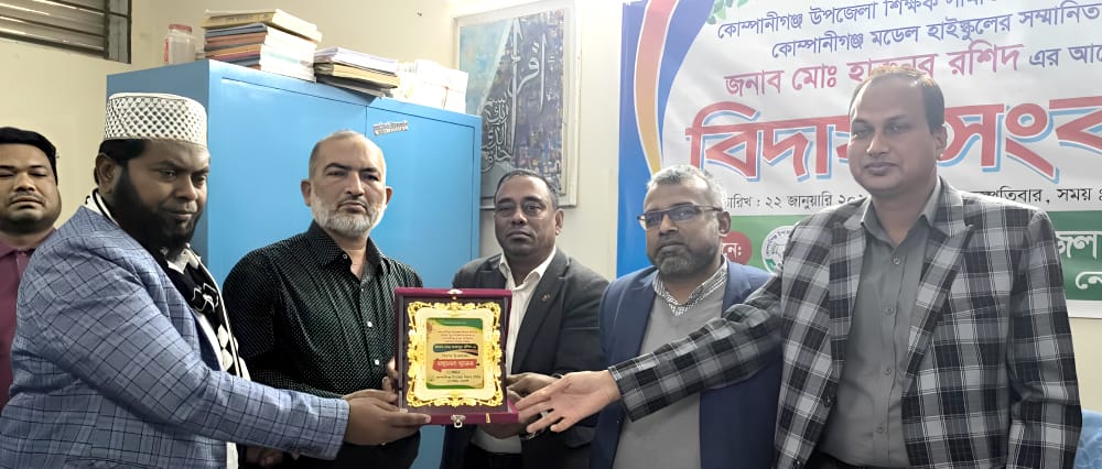 রমজান আলী, কোম্পানীগঞ্জ (নোয়াখালী) প্রতিনিধি :নোয়াখালীর কোম্পানীগঞ্জ উপজেলায় শিক্ষক সমাজের গর্ব ও বিশিষ্ট শিক্ষাবিদ মোঃ হারুনুর রশিদের আমেরিকা গমন উপলক্ষে এক বিদায় সংবর্ধনা অনুষ্ঠিত হয়েছে।