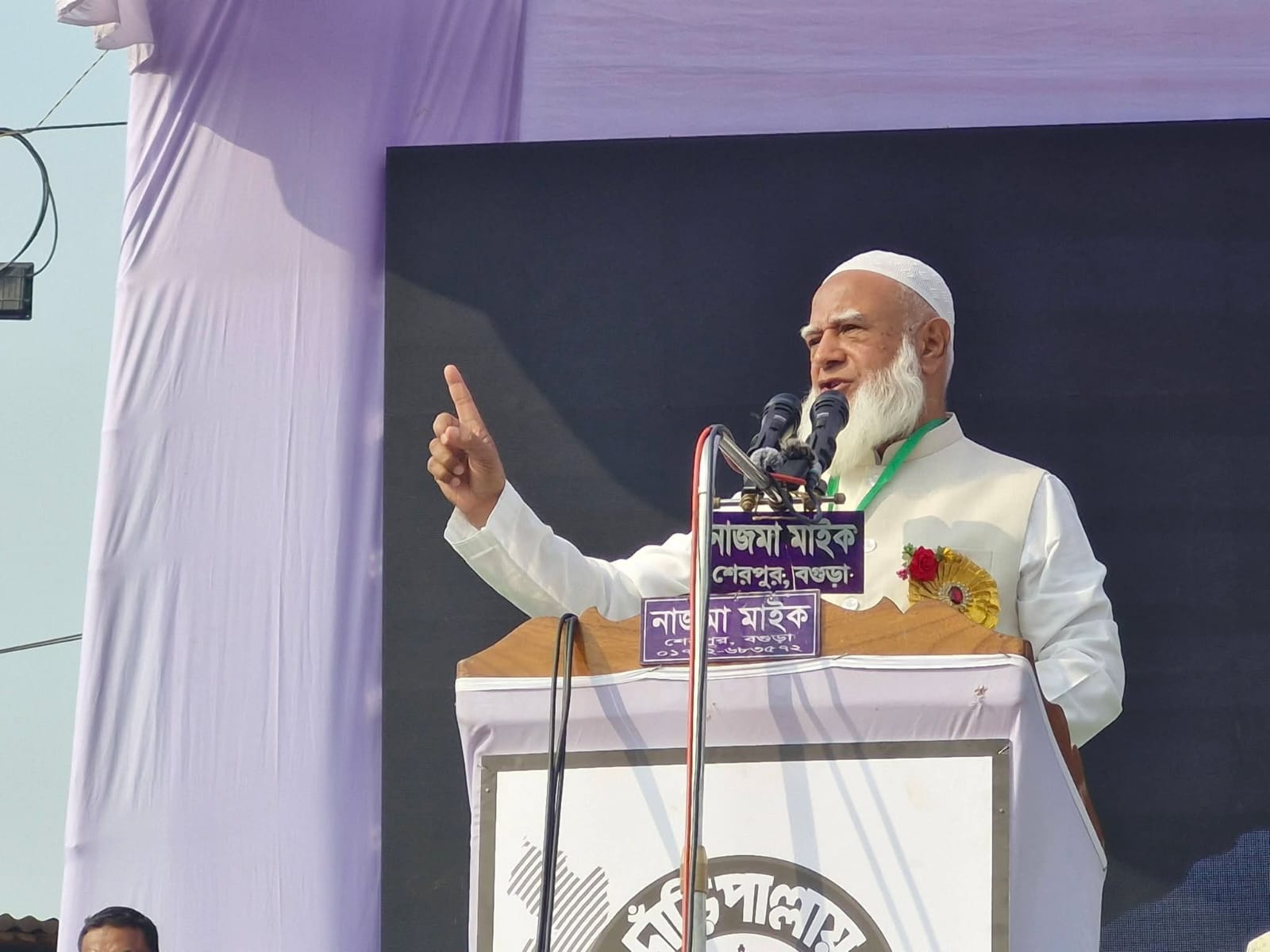 উত্তরবঙ্গ সফর শেষে শনিবার (২৪ জানুয়ারি) দুপুরে ঢাকায় ফেরার পথে বগুড়ার শেরপুর উপজেলার গাড়িদহ ইউনিয়নের মহিপুর খেলার মাঠে আয়োজিত এক বিশাল নির্বাচনী পথসভায় প্রধান অতিথির বক্তব্যে তিনি এসব কথা বলেন। আসন্ন ত্রয়োদশ জাতীয় সংসদ নির্বাচনে বগুড়া-৫ (শেরপুর-ধুনট) আসনের ১০ দলীয় জোট সমর্থিত জামায়াত প্রার্থীর পক্ষে এই সভার আয়োজন করা হয়।