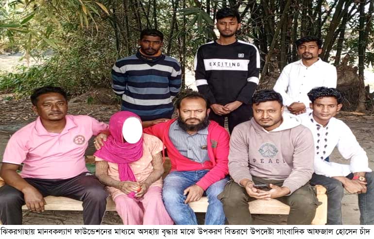 ঝিকরগাছায় মানবকল্যাণ ফাউন্ডেশনের মাধ্যমে অসহায় বৃদ্ধার মাঝে উপকরণ বিতরণ