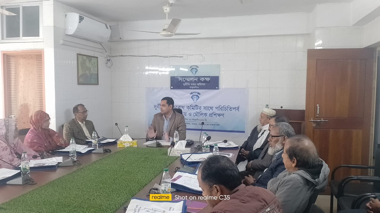 মোঃ জাহেরুল ইসলাম আটোয়ারী (পঞ্চগড়) প্রতিনিধি : “ রুখবো দুর্নীতি গড়বো দেশ- হবে সোনার বাংলাদেশ” শ্লোগানকে সামনে রেখে দুর্নীতি দমন কমিশন-দুদক সমন্বিত জেলা কার্যালয় ঠাকুরগাঁও-এ দুর্নীতি প্রতিরোধ বিষয়ক দিনব্যাপি প্রশিক্ষণ কর্মশালা অনুষ্ঠিত হয়েছে। সোমবার ( ২৬ জানুয়ারি) দুদক সমন্বিত জেলা কার্যালয় ঠাকুরগাঁও-এর উদ্যোগে কার্যালয়ের সম্মেলন কক্ষে এ কর্মশালার আয়োজন করা হয়। প্রশিক্ষণ কর্মশালায় পঞ্চগড় ও ঠাকুরগাঁও জেলার সকল উপজেলার দুর্নীতি প্রতিরোধ কমিটি সদস্যরা অংশ গ্রহণ করেন। প্রশিক্ষক হিসেবে প্রশিক্ষনার্থীদের উদ্দেশ্যে পৃথক পৃথকভাবে গুরুত্বপূর্ণ বক্তব্য উপস্থাপন করেন, দুর্নীতি দমন কমিশন-দুদক সমন্বিত জেলা কার্যালয় ঠাকুরগাঁও এর সহকারী পরিচালক মোঃ আজমির শরিফ মারজী, উপ-সহকারী পরিচালক মোঃ জাহাঙ্গীর আলম ও সহকারী পরিচালক মোঃ ইমরান হোসেন। প্রশিক্ষণে দুর্নীতি কি ও কেন ঘটে, দুর্নীতির তপশীলভুক্ত অপরাধসমুহ, সমাজ ও রাষ্ট্রে দুর্নীতির প্রভাব,দুর্নীতি দমন কমিশন, সমন্বিত জেলা কার্যালয় ঠাকুরগাঁওয়ের উল্লেখযোগ্য কাজের বাস্তব উদাহরণ ( অভিযান,মামলা ফাঁদ ইত্যাদি), দুদক আইন ২০০৪ ও দুদক বিধিমালা ২০০৭ (দুদকের ক্ষমতা ১৯ ধারা, শাস্তির ধারাসমুহ, ফাঁদ ,মামলা, এনফোর্সমেন্ট, ২৬ এবং ২৭ ধারা ইত্যাদি, দুর্নীতি প্রতিরোধ কমিটির দায়িত্ব ও কর্তব্য, কমিটির সদস্যদের নৈতিক আচরণবিধি, দুর্নীতি শনাক্তকরণ ও রিপোর্টিং সম্পর্কে ধারণা দেওয়া হয়। সহকারী পরিচালক আজমির শরীফ মারজী বলেন, দুর্নীতির বিরুদ্ধে সামাজিক প্রতিরোধ গড়ে তোলার ক্ষেত্রে সচেতন নাগরিকের ভুমিকা অত্যান্ত গুরুত্বপূর্ণ। প্রশিক্ষণের মাধ্যমে অর্জিত জ্ঞান বাস্তব জীবনে প্রয়োগ করলেই দুর্নীতিমৃক্ত সমাজ গঠন সম্ভব হবে। দুর্নীতি প্রতিরোধ কমিটির সদস্যদের সক্রিয় অংশষগ্রহণের মাধ্যমে তৃণমুল পর্যায়ে সততা ও নৈতিকতার চর্চা আরও বেগবান হবে। প্রশিক্ষণে দুর্নীতি প্রতিরোধে করণীয়, নাগরিক দায়িত্ব, আইনগত কাঠামো ও সচেতনতা বৃদ্ধির বিভিন্ন দিক তুলে ধরা হয়। প্রশিক্ষণ শেষে প্রশিক্ষণার্থীদের মূল্যায়ন যাচাই করা হয়। মূল্যায়নে বিজয়ীদের পুরস্কৃত করা হয়। সবশেষে প্রশিক্ষণার্থীদের মাঝে সনদপত্র বিতরণ করা হয়।