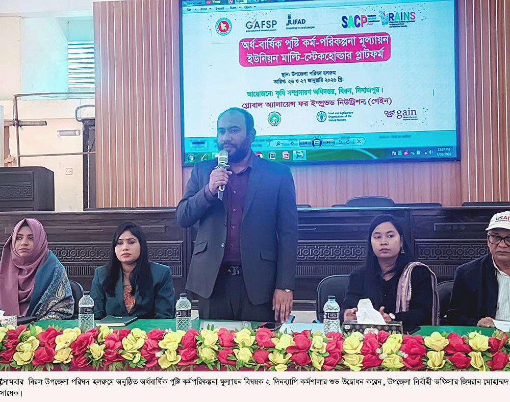 এম, এ কুদ্দুস, বিরল (দিনাজপুর) প্রতিনিধি : দিনাজপুরের বিরলে অর্ধবার্ষিক পুষ্টি কর্মপরিকল্পনা মূল্যায়ন বিষয়ক ২ দিনব্যাপি কর্মশালার শুভ উদ্বোধন অনুষ্ঠিত হয়েছে।