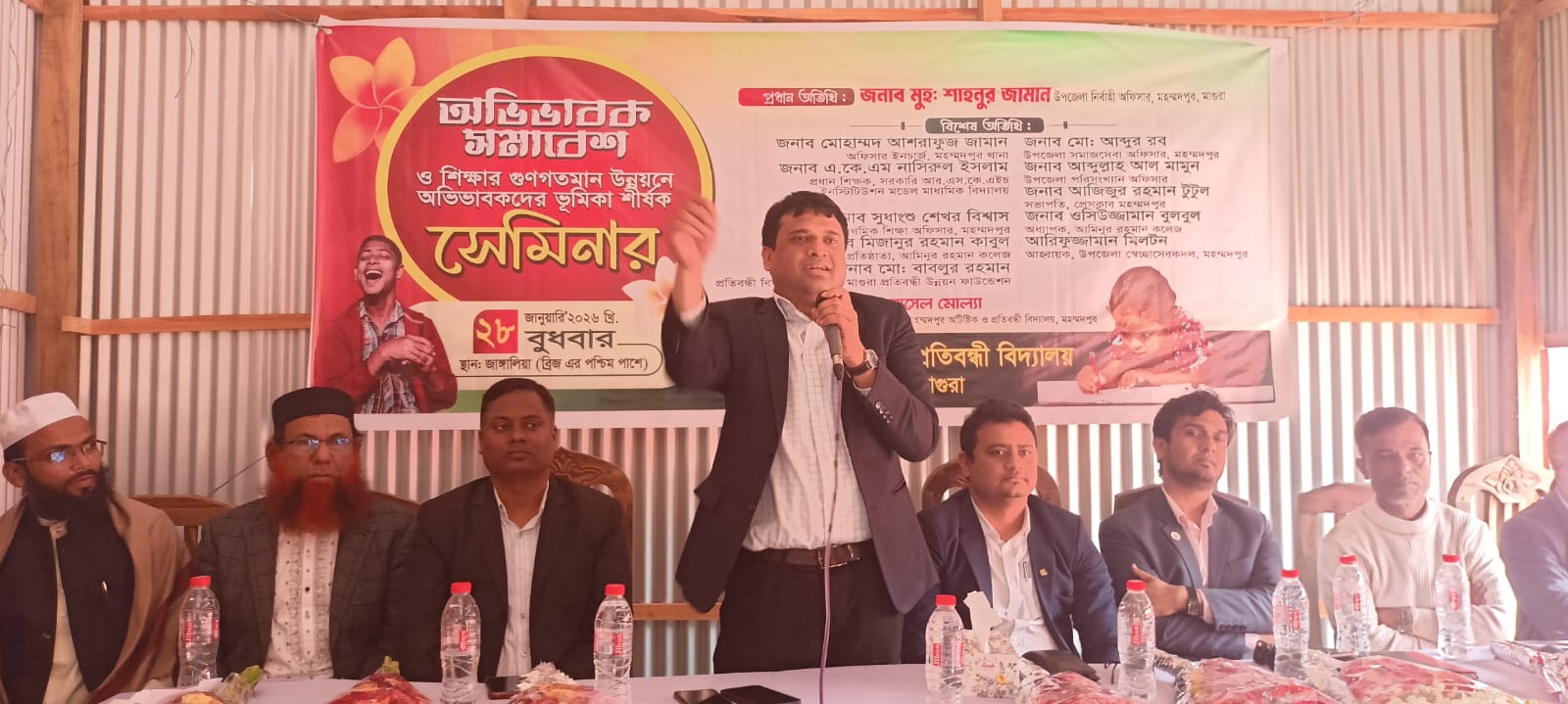 স্টাফরিপোর্টার মাগুরা।। মাগুরার মহম্মদপুরে অটিস্টিক ও প্রতিবন্ধী বিদ্যালয়ে শিক্ষার গুণগত মান উন্নয়নে অভিভাবকদের ভূমিকা শীর্ষক এক সেমিনার অনুষ্ঠিত হয়েছে।
