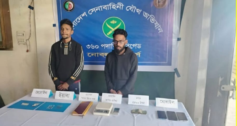 সেনাবাহিনী সূত্রে জানা যায়, গোপন সংবাদের ভিত্তিতে শুক্রবার ভোর ৩টা থেকে সকাল ১০টা পর্যন্ত অভিযান চালিয়ে তাদের আটক করা হয়। এ সময় তাদের কাছ থেকে বিপুল পরিমাণ মাদকদ্রব্য ও সরঞ্জাম উদ্ধার করা হয়।উদ্ধারকৃত মাদকদ্রব্যের বিবরণ ইয়াবা ট্যাবলেট ১৯ পিস,হিরোইন ০১পুরিয়া,হিরোইন বিক্রির হিসাব রেজিস্টার ০২টি, হিরোইন মাপার মেশিন ০২টি, নগদ টাকা ৫,৫০০ টাকা, মোবাইল ফোন ০৪টি,মোটরসাইকেল  ০২টি।