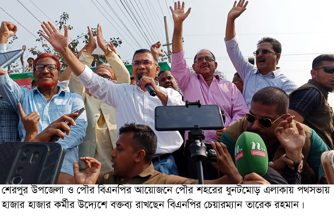 ৩১ জানুয়ারী শনিবার বেলা ২ টায় বগুড়া থেকে ঢাকা ফেরার পথে শেরপুর উপজেলা ও পৌর বিএনপির আয়োজনে পৌর শহরের ধুনটমোড় এলাকায় পথসভায় এসব কথা বলেন, বিএনপির চেয়ারম্যান তারেক রহমান।