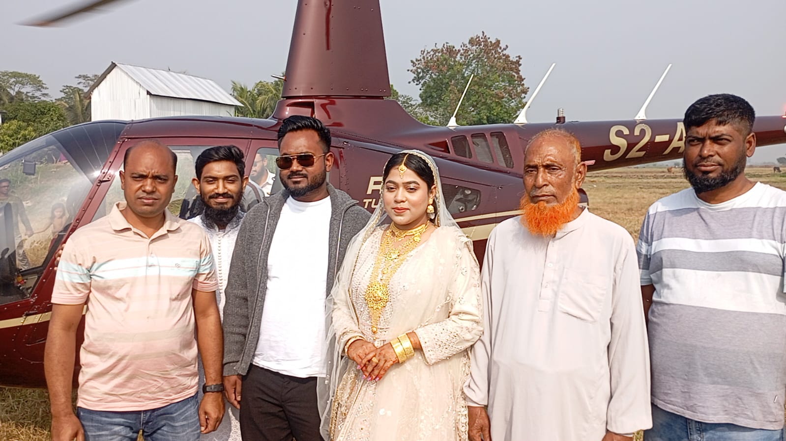 রাজৈরের দক্ষিন গোয়ালদী গ্রামে, মেয়ে নিয়ে হেলিকপ্টারে করে মেলাইয়া খাইতে আসলো জামাই।