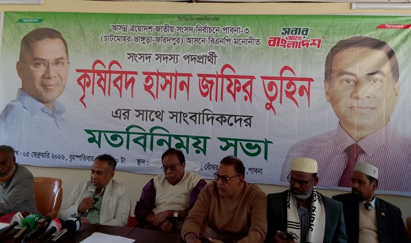 পাবনা-৩ আসনে বিএনপি মনোনীত প্রার্থী হাসান জাফির তুহিনের সাংবাদিকদের সঙ্গে মতবিনিময় সভা