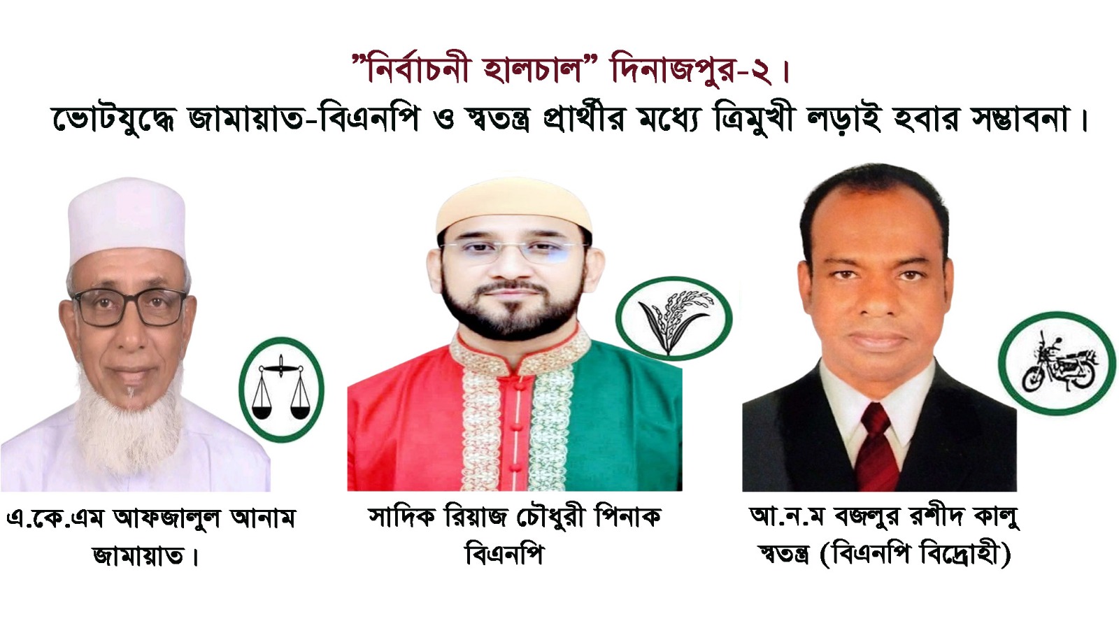 ”নির্বাচনী হালচাল” দিনাজপুর-২। মার্কা, দল এসব বুঝলেও গণভোট সম্পর্কে এখনো সন্দিহান তৃণমূল পর্যায়ের মহিলা ভোটারেরা। ভোটযুদ্ধে হতে পারে জামায়াত-বিএনপি ও স্বতন্ত্র প্রার্থীর মধ্যে ত্রিমুখী লড়াই।