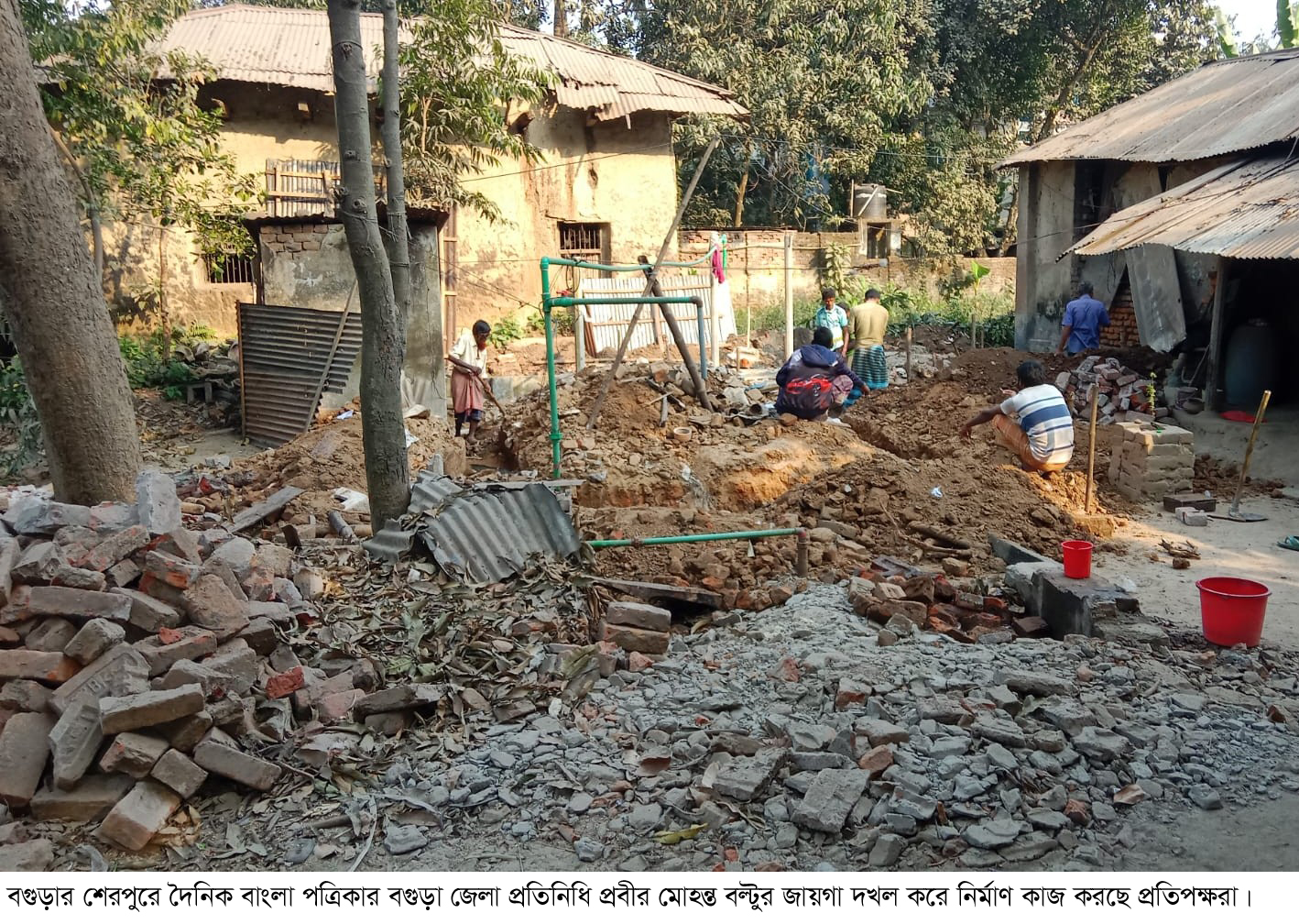 জানা যায়, পৌর শহরের জগন্নাথপাড়া এলাকার মৃত গৌর চন্দ্র দাসের ছেলে দৈনিক বাংলা পত্রিকার বগুড়া জেলা প্রতিনিধি প্রবীর মোহন্ত বল্টুর সাথে মৃত শুবল চন্দ্র দাসের ছেলে শুভ চন্দ্র দাস শোভন, মাখন লাল দাসের ছেলে শ্যমল চন্দ্র দ্সা ও মৃত শুবল চন্দ্র দাসের স্ত্রী জ্যোতিকা রানী দাসের জমি জমা নিয়ে দীর্ঘদিন যাবত বিরোধ চলে আসছিল। এ ঘটনায় এলকার গন্যমান্য ব্যাক্তিরা বহুবার শালিশ করেছেন কিন্তু তাহারা শালিশ মানেন না। পরবর্তীতে ভুক্তভোগী প্রবীর মোহন্তর পিতা বিগত ২০২০ সালে বগুড়ার জেলা যুগ্ম জজ ১ম আদালতে একটি মামলা দায়ের করেন(১৫৬/২০২০)। উক্ত মামলায় জমির উপর ¯িহতিবস্তা জারি করেন জেলা জজ আদালত। আদালতের সেই আদেশ অমান্য করে গত ৮ ফেব্রুয়ারী রবিবার জোরপুর্বক বিবাদমান জায়গায় ঘর নির্মাণ শুরু করে প্রতিপক্ষরা। প্রবীর মোহন্ত বল্টু কাজে বাধা দিতে গেলে তাকে অশ্লীল ভাষায় গালাগালি কওে এবং প্রান নাশের হুমকী দেয়। তার চিৎকাওে আশেপাশের লোকজন এগিয়ে এসে তাকে নিরাপদ স্থানে নিয়ে যায়। পরে নির্মাণ কাজ বন্ধ রাখতে প্রবীর মোহন্ত বল্টু বাদি হয়ে শেরপুর থানায় একটি লিখিত অভিযোগ দায়ের করেন।