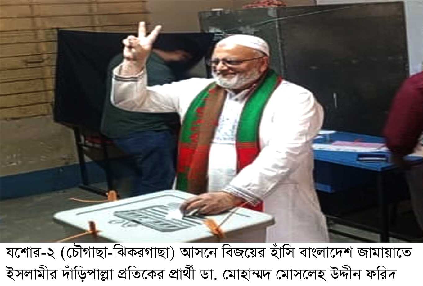 আফজাল হোসেন চাঁদ, ঝিকরগাছা : ৮৬ যশোর-২ এর চৌগাছা ও ঝিকরগাছা উপজেলার নিয়ে গঠিত। যার মধ্যে ঝিকরগাছা উপজেলায় সামান্য অপ্রীতিকর ঘটনার পরও শান্তিপূর্ণ ভাবে ত্রয়োদশ জাতীয় সংসদ নির্বাচনে যশোর-২ (চৌগাছা-ঝিকরগাছা) আসনে বাংলাদেশ জামায়াতে ইসলামীর দাঁড়িপাল্লা প্রতিকের প্রার্থী ডা. মোহাম্মদ মোসলেহ উদ্দীন ফরিদের মুখে বিজয়ের হাঁসি। তিনি চূড়ান্ত ফলাফলে দু’উপজেলার (চৌগাছা-৮১ ও ঝিকরগাছা-৯৪) সর্বমোট ১৭৫টি কেন্দ্র এবং পোস্টাল ব্যালটসহ দাঁড়িপাল্লা প্রতিকে ১লক্ষ ৮০হাজার ৯শত ৬৫ ভোট পেয়েছেন। অপর দিকে তার নিকটতম প্রতিদ্বন্দী প্রার্থী বাংলাদেশ জাতীয়তাবাদী দল (বিএনপি) এর মোছা. সাবিরা সুলতানা ধানেরশীষ প্রতিকে পোস্টাল ব্যালটসহ পেয়েছেন ১লক্ষ ৪৬হাজার ৪শত৪৭ ভোট। এ থেকে ৩৪হাজার ৫শত ১৮ ভোটের ব্যবধানে ডা. মোহাম্মদ মোসলেহ উদ্দীন ফরিদ বেসরকারি ফলাফলে বিজয়ী হয়েছেন।