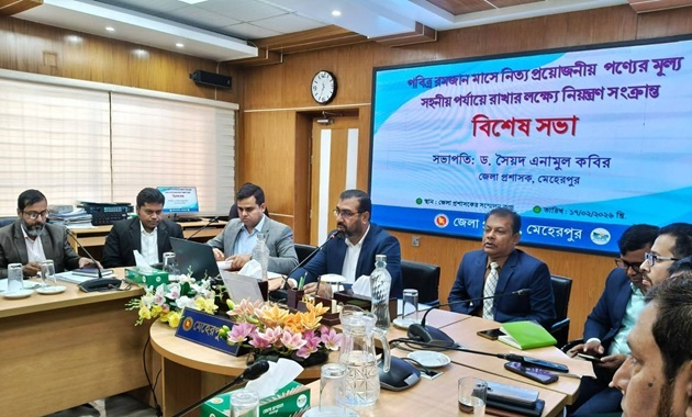 মেহেরপুরে পবিত্র রমজান মাসে নিত্যপ্রয়োজনীয় পণ্যের মূল্য সহনীয় পর্যায়ে রাখার লক্ষ্যে বিশেষ সভা অনুষ্ঠিত
