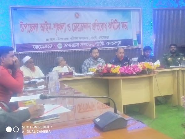 আমিরুল ইসলাম অল্ডাম মেহেরপুর জেলা প্রতিনিধি : মেহেরপুরের গাংনীতে উপজেলা আইন শৃঙ্খলা ও চোরাচালান প্রতিরোধ কমিটির সভা অনুষ্ঠিত হয়েছে।