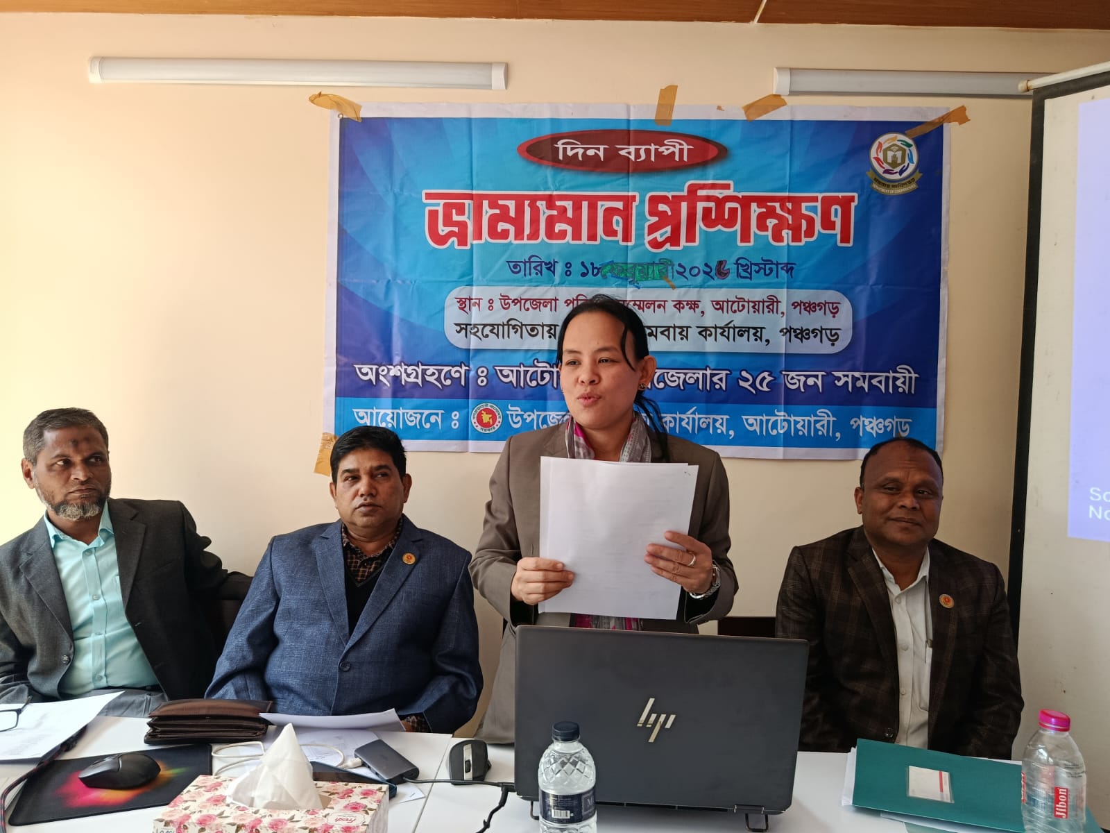 মোঃ জাহেরুল ইসলাম আটোয়ারী (পঞ্চগড়) প্রতিনিধি : পঞ্চগড়ের আটোয়ারীতে সমবায়ীদের নিয়ে দিনব্যাপি ভ্রাম্যমান প্রশিক্ষণ অনুষ্ঠিত হয়েছে। উপজেলা সমবায় কার্যালয়ের আয়োজনে এবং জেলা সমবায় কার্যালয়ের সহযোগিতায় উপজেলার বিভিন্ন সমবায় সমিতির সদস্যবৃন্দদের নিয়ে বুধবার (১৮ ফেব্রুয়ারি) উপজেলা পরিষদ ভবনের ৫ম তলায় আইসিটি হলরুমে দিনব্যাপি ভ্রাম্যমান প্রশিক্ষণ অনুষ্ঠিত হয়। ভ্রাম্যমান প্রশিক্ষণে সমবায় সমিতির খাতাপত্র লিখন ও হিসাব সংরক্ষণ সম্পর্কে আইন-বিধি অনুযায়ী সমবায় সমিতির জন্য ব্যবহার্য খাতাপত্রের বিবরণ এবং সংশ্লিষ্ট ধারা ও বিধির আলোচনা করেন প্রধান রিসোর্স পারসন ও উপজেলা নির্বাহী অফিসার রিপামনি দেবী। অন্যান্যদের মধ্যে রিসোর্স পারসন হিসেবে উপস্থিত ছিলেন জেলা সমবায় অফিসার পঞ্চগড় মোঃ মোস্তফা কামাল, উপজেলা সমবায় অফিসার তেঁতুলিয়া মোঃ মামুন কবীর, জেলা সমবায় কার্যালয়ের পরিদর্শক হীতেন্দ্র নাথ বর্মন, উপজেলা সমবায় অফিসার,আটোয়ারী মোঃ ফারুক হোসেন। কোর্স পরিচালক হিসেবে উপস্থিত ছিলেন জেলা সমবায় অফিসের প্রশিক্ষক রেনেসা খানম, সহকারী কোর্স পরিচালক হিসেবে ছিলেন উপজেলা সমবায় অফিসের সহকারী পরিদর্শক পরিতোষ চন্দ্র রায়। প্রশিক্ষণে রাজস্ব খাতের আওতায় সমবায় সমিতি আইন ও বিধিমালা সম্পর্কে ধারনা, সমবায় ভিত্তিক উন্নয়নমূলক কর্মকান্ডের বিস্তৃতকরণ ও সমবায়ীদের দক্ষ জনগোষ্ঠী হিসেবে গড়ে তোলা বিষয়ে বিস্তারিত আলোচনা করা হয়। উপজেলার বিভিন্ন সমবায় সমিতির ২৫ জন সমবায়ী প্রশিক্ষণে অংশগ্রহণ করেন। অংশগ্রহণকারীরা সমবায় কার্যক্রমের আধুনিকায়ন, সুশাসন ও আর্থ-সামাজিক উন্নয়নে সমবায়ের ভুমিকা নিয়ে প্রশিক্ষণ গ্রহণ করেন। এসময় প্রশিক্ষণার্থীদের উদ্দেশ্যে ইউএনও রিপামনি দেবী বলেন, সমবায় আন্দোলনকে শক্তিশালী করতে হলে দক্ষ মানবসম্পদ গঠন জরুরী। এ ধরনের প্রশিক্ষণই মাঠ পর্যায়ে ইতিবাচক পরিবর্তন আনবে।