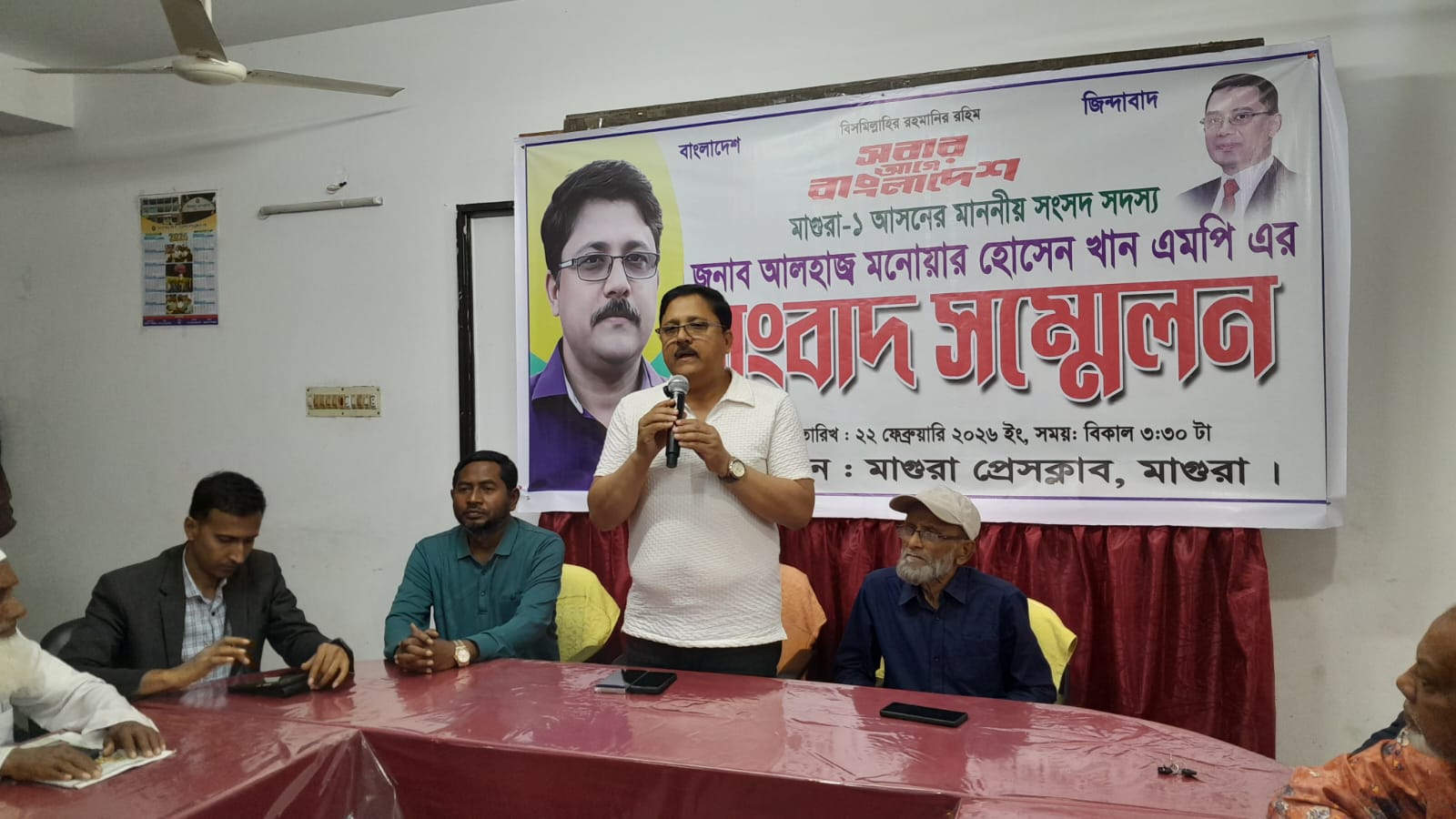 মোঃ সাইফুল্লাহ, মাগুরা প্রতিনিধি: মাগুরা-১ আসনের নবনির্বাচিত সংসদ সদস্য মনোয়ার হোসেন খান বলেছেন,আমি মাগুরার উন্নয়নে কাজ করতে চাই। এ জেলায় দুর্নীতি ও চাঁদাবাজের স্থান নেই। যারা এই জেলায় দুর্নীতি ও চাঁদাবাজ সাথে জড়িত থাকবে তাদেরকে প্রতিহত করা হবে। পাশাপাশি জেলায় স্বাস্থ্য, শিক্ষা ও অর্থনীতির উন্নয়নের জন্য আমি কাজ করবো। আপনারা আমাকে সহযোগিতা করুন আমি যেন পরিচ্ছন্ন মাগুরা হিসেবে গড়ে তুলতে পারি। আজ রবিবার বিকালে প্রেসক্লাব মিলনায়তনে সাংবাদিকদের সাথে মতবিনিময় কালে তিনি এ কথাগুলো বলেন। এ সময় বক্তব্য রাখেন মাগুরা প্রেসক্লাবের সভাপতি অধ্যাপক সাইদুর রহমান, সাধারণ সম্পাদক শফিকুল ইসলাম শফিক, সাংবাদিক শরীফ তেহেরান টুটুল, শাহীন আলম তুহিন,ফয়সাল পারভেজ ও শরীফ স্বাধীনসহ অন্যরা। মতবিনিময় সভায় মাগুরা প্রেসক্লাবের সদস্যবৃন্দ উপস্থিত ছিলেন।