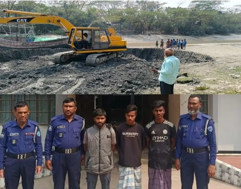 মাটি কাটার অভিযোগে রবিবার তিনজনকে আটক করা হয়। আটক ব্যক্তিরা হলেন—উপজেলার পূর্ব চরকলাকোপা গ্রামের পরাধীন পাশা, চরহাসান হোসেন গ্রামের আবদুল আহাদ এবং একই এলাকার মো. রাকিব।