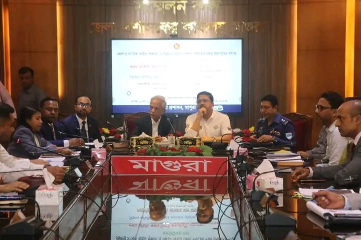 মোঃ সাইফুল্লাহ, মাগুরা প্রতিনিধি: মাগুরায় জেলার সার্বিক আইন-শৃঙ্খলা পরিস্থিতি ও চলমান উন্নয়ন কার্যক্রম পর্যালোচনা বিষয়ক জেলা পর্যায়ের দপ্তর প্রধানদের সাথে মতবিনিময় সভা ১মার্চ রবিবার সকালে জেলা প্রশাসকের সম্মেলন কক্ষে অনুষ্ঠিত হয়েছে।