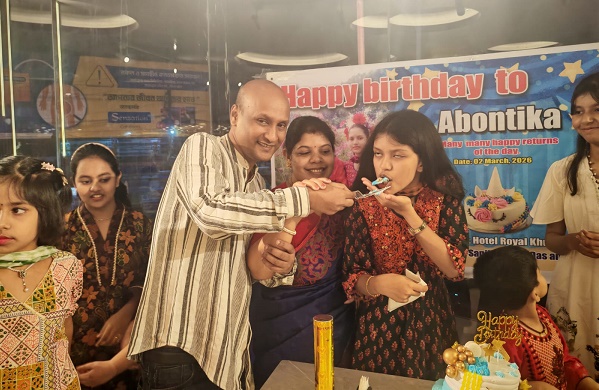 মোঃ আলী শেখ, স্টাফ রিপোর্টার :আজ সোমবার (২ মার্চ,২৬) জমকালো আয়োজনে খুলনার বিখ্যাত রয়েল হোটেলে অনুষ্ঠিত হলো বহুল প্রচারিত জনপ্রিয় অনলাইন নিউজ পোর্টাল সারাক্ষণ বার্তার প্রকাশক দম্পতির একমাত্র সন্তান অবন্তিকা দাসের জন্মদিন উদযাপন। অবন্তিকা দাস সপ্তাহ শ্রেণীর শিক্ষার্থী। সারাক্ষণ বার্তার প্রকাশক পিতা সনজীব কুমার দাস ও মাতা শিক্ষিকা ঝুম্পা দাসের একমাত্র সন্তান। জন্মদিন উদযাপন অনুষ্ঠানে উপস্থিত ছিলেন অবন্তিকার সহপাঠিসহ অনেক গুণগ্রাহী ও অতিথিবৃন্দ। অবন্তিকা বড় হয়ে একজন মানবিক ডাক্তার হতে চায়। এজন্য সবার কাছে আশীর্বাদ কামনা করেছেন।তার মা শিক্ষিকা ঝুম্পা দাস বলেন, আমাদের সন্তান অবন্তিকা খুবই ভালো মনের ও মানবিক স্বভাবের। আমরা চাই ভবিষ্যতে সে একজন আদর্শ মানবিক মানুষ হিসেবে নিজেকে প্রতিষ্ঠিত করতে সক্ষম হবে। সারাক্ষণ বার্তা পরিবার তার ভবিষ্যৎ জীবনের সাফল্য কামনা করে।