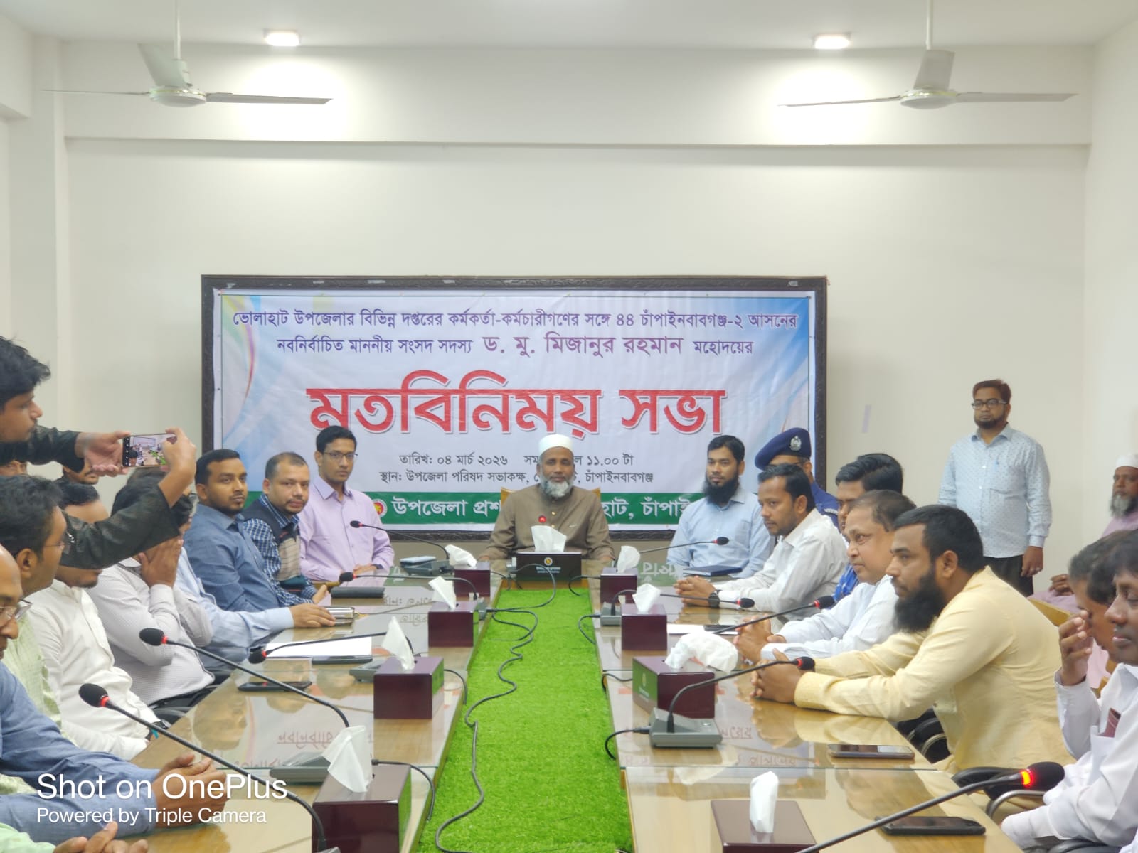 ছবিক্যাপশন: ভোলাহাট উপজেলা কর্মকর্তাদের সঙ্গে মতবিনিময় সভা করেন চাঁপাইনবাবগঞ্জ-২ আসনের নবনির্বাচিত সংসদ সদস্য ড. মু. মিজানুর রহমান।