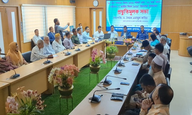 সভায় সভাপতিত্ব করেন জেলা প্রশাসক ড. সৈয়দ এনামুল কবির। অতিরিক্ত জেলা প্রশাসক (সার্বিক) তরিকুল ইসলামের সঞ্চালনায় বক্তব্য রাখেন অতিরিক্ত পুলিশ সুপার (অর্থ ও প্রশাসন) আতিকুল হক, জেলা পরিষদের প্রধান নির্বাহী কর্মকর্তা গোলাম জাকারিয়া, জেলা শিক্ষা অফিসার আব্দুর রহিম, ইসলামিক ফাউন্ডেশনের উপ-পরিচালক এ. জে. এম. সিরাজুম মুনির, জেলা তথ্য অফিসার আব্দুল্লাহ আল মামুন, জেলা গণগ্রন্থাগারিক আফরোজা খানম, মুক্তিযোদ্ধা ক্যাপ্টেন আব্দুল মালেক, জেলা সমাজসেবা কার্যালয়ের উপ-পরিচালক আসাদুল ইসলাম, জেলা বিএনপির সাংগঠনিক সম্পাদক ওমর ফারুক লিটন, জেলা জামায়াতের রাজনৈতিক সেক্রেটারি রুহুল আমিনসহ সংশ্লিষ্ট দপ্তরের কর্মকর্তারা।