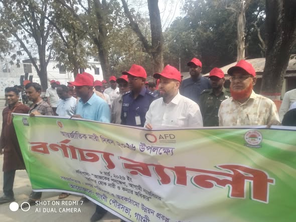আমিরুল ইসলাম অল্ডাম  মেহেরপুর সংবাদদাতা : গাংনীতে আন্তর্জাতিক নারী দিবস -২০২৬ উদযাপন উপলক্ষে বর্ণাঢ্য র‌্যালি ও আলোচনা সভা অনুষ্ঠিত হয়েছে। ‘ আজকের পদক্ষেপ, আগামীর ন্যায়বিচার,সুরক্ষিত হোক নারী ও কন্যার অধিকার ’ এবারের এই প্রতিপাদ্যকে সামনে নিয়ে মেহেরপুরের গাংনীতে আন্তর্জাতিক নারী দিবস উদযাপন উপলক্ষে বর্ণাঢ্য র‌্যালি আলোচনা সভা অনুষ্ঠিত হয়েছে।
