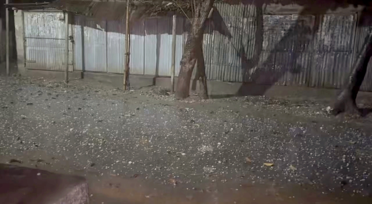 সোমবার (১৬ মার্চ) রাত প্রায় ৮টার দিকে এ ঘটনা ঘটে। প্রায় ১০ মিনিট ধরে শীলা বৃষ্টি অব্যাহত ছিল বলে স্থানীয়রা জানিয়েছেন।