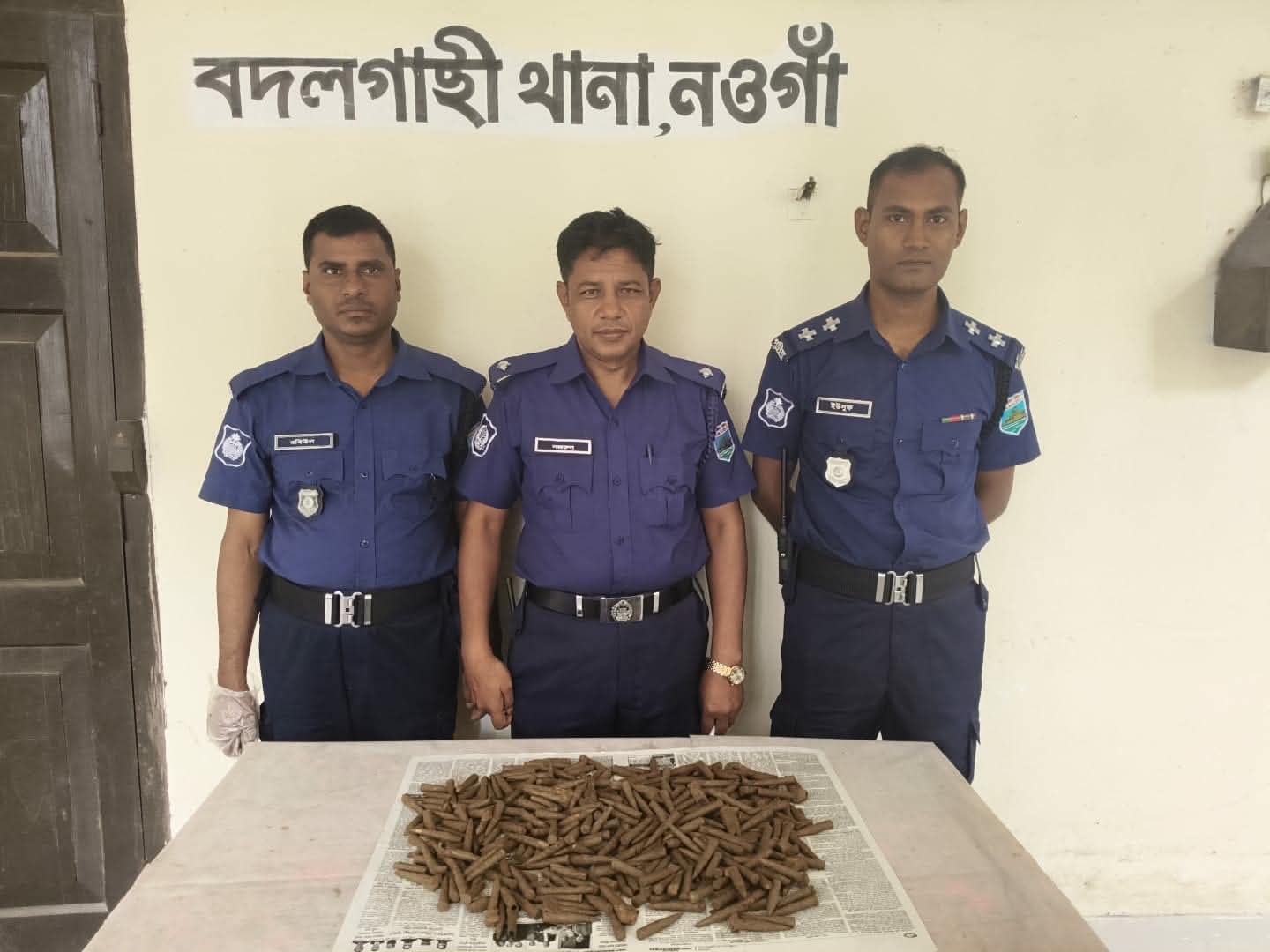 বিষয়টি বুঝতে পেরে তিনি তাৎক্ষণিকভাবে বদলগাছী থানায় খবর দেন। খবর পেয়ে পুলিশ দ্রুত ঘটনাস্থলে পৌঁছে স্থানীয়দের উপস্থিতিতে মাটি খনন করে ৩২৫ পিস থ্রি-নট-থ্রি রাইফেলের গুলি উদ্ধার করে এবং সেগুলো জব্দ করে।