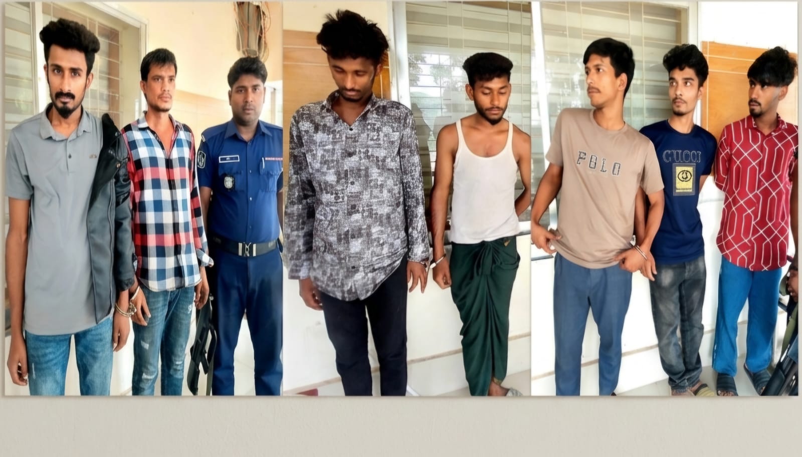 আটককৃতরা হলেন—বড়রিয়া গ্রামের আবু বক্কারের ছেলে সাগর, ধোয়াইল গ্রামের হাবিবুর রহমানের ছেলে মামুন, একই গ্রামের গরীব শেখের ছেলে নুর ইসলাম, দুলাল শেখের ছেলে সুমন, বেজড়া গ্রামের আবু তালেব শেখের ছেলে রিয়াজ, রব মুন্সির ছেলে মুলজার এবং ধোয়াইল গ্রামের হারুন শেখের ছেলে রাকিব।