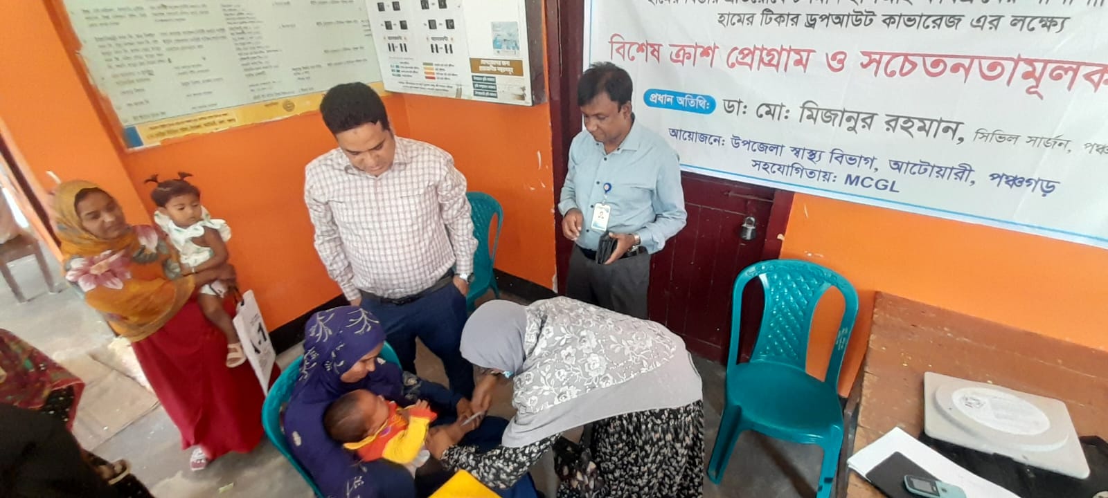 মোঃ জাহেরুল ইসলাম আটোয়ারী (পঞ্চগড়) প্রতিনিধি : পঞ্চগড়ের আটোয়ারীতে হামের বিস্তার প্রতিরোধে চলমান ইপিআই কার্যক্রমের পাশাপাশি শতভাগ হামের টিকার ড্রপআউট কাভারেজ’র লক্ষ্যে বিশেষ ক্রাশ প্রোগ্রাম ও সচেতনতামূলক কর্মসূচি পালন করা হয়। উপজেলা স্বাস্থ্য বিভাগের আয়োজনে শনিবার ( ১১ এপ্রিল) দুপুরে প্রধান অতিথি হিসেবে উপস্থিত থেকে কর্মসূচির শুভ উদ্বোধন করেন পঞ্চগড়ের সিভিল সার্জন ডা. মোঃ মিজানুর রহমান। এ সময় উপস্থিত ছিলেন উপজেলা স্বাস্থ্য ও পরিবার পরিকল্পনা কর্মকর্তা ডা. মোঃ হুমায়ুন কবীর, এমওডিসি ডা.শেখ রায়হান বিন আজিজ, জেলা ইপিআই সুপারিনটেনডেন্ট মোঃ হাসিবুর রহমান শাহ্, এমটিইপিআই নূর আলম, এমসিজিএল এর প্রতিনিধি মোঃ ওমর ফারুক প্রমুখ। প্রধান অতিথির বক্তব্যে সিভিল সার্জন ডা. মোঃ মিজানুর রহমান বলেন, সারাদেশে শিশুদের মধ্যে ছড়িয়ে পড়ছে হাম। প্রতিদিন বাড়ছে রোগীর সংখ্যা, ঘটছে মৃত্যুও। তিনি বলেন, হাম কেবল স্বাস্থ্য সমস্যা নয়; টিকাদান ব্যবস্থার দুর্বলতা ও সামাজিক সচেতনতার ঘাটতির প্রতিফলন। হাম বৃদ্ধির অন্যতম কারণ টিকাদানের কভারেজে ঘটতি। অনেক শিশু নিয়মিত টিকাদান কর্মসূচি বা ইপিআই থেকে বাদ পড়ে যাওয়ায় তাদের শরীরে রোগ প্রতিরোধ ক্ষমতা তৈরী হয়নি। এছাড়া ঘনবসতিপূর্ণ এলাকা এবং অপুষ্টির কারণেও ভাইরাসের বিস্তার দ্রুত ঘটে। টিকা না নেওয়া বা অসম্পুর্ণ ডোজ নেওয়ার ফলে একটি বড় জনগোষ্ঠী ঝুঁকির মুখে থাকে, যা প্রাদুর্ভাবের মুল কারণ। হাম প্রতিরোধে টিকাদান কর্মসূচিকে সর্বোচ্চ অগ্রধিকার দেওয়ার ওপর গুরুত্বারোপ করেন তিনি। উপজেলা স্বাস্থ্য ও প. প. কর্মকর্তা ডা. মোঃ হুমায়ুন কবীর জানান, উপজেলার সকল ইউনিয়নে ৯ মাস ও ১৫ মাসের বেশী বয়সী শিশু যাদের এমআর প্রথম ডোজ ও এমআর দ্বিতীয় ডোজ টিকা নেওয়ার সময় হয়েছিল কিন্তু টিকা নেয় নি, তাদেরকে এই কর্মসূচির মাধ্যমে টিকার আওতায় আনা হয়। এতে আটোয়ারী উপজেলায় এমআর প্রথম ডোজ ১৩১ জন শিশু লক্ষ্যমাত্রার বিপরীতে ১২৩ জন এবং এমআর দ্বিতীয় ডোজ ১৬৩ জন শিশু লক্ষ্যমাত্রার বিপরীতে ১৪৫ জন শিশুকে টিকা প্রদানে লক্ষ্যমাত্র অর্জিত হয়। এছাড়াও প্রধান অতিথি সিভিল সার্জন ডা. মিজানুর রহমান উপজেলার বিভিন্ন টিকাদান কেন্দ্র পরিদর্শন করেন। পরিদর্শনকালে তিনি টিকাদান কেন্দ্রে আগত মা ও অন্যান্য শিশুদের মাঝে বিভিন্ন স্বাস্থ্য সচেতনতামূলক বার্তা প্রদান করেন এবং হাম রোগের কারণ, লক্ষণ ও বিস্তার প্রতিরোধে করণীয় সম্পর্কে আলোকপাত করেন। এসময় তিনি জানান যে, সারাদেশের ন্যায় আগামী ২০ এপ্রিল থেকে ১০ মে পর্যন্ত পঞ্চগড়ের সকল উপজেলায় এমআর ক্যাম্পেইন অনুষ্ঠিত হবে।