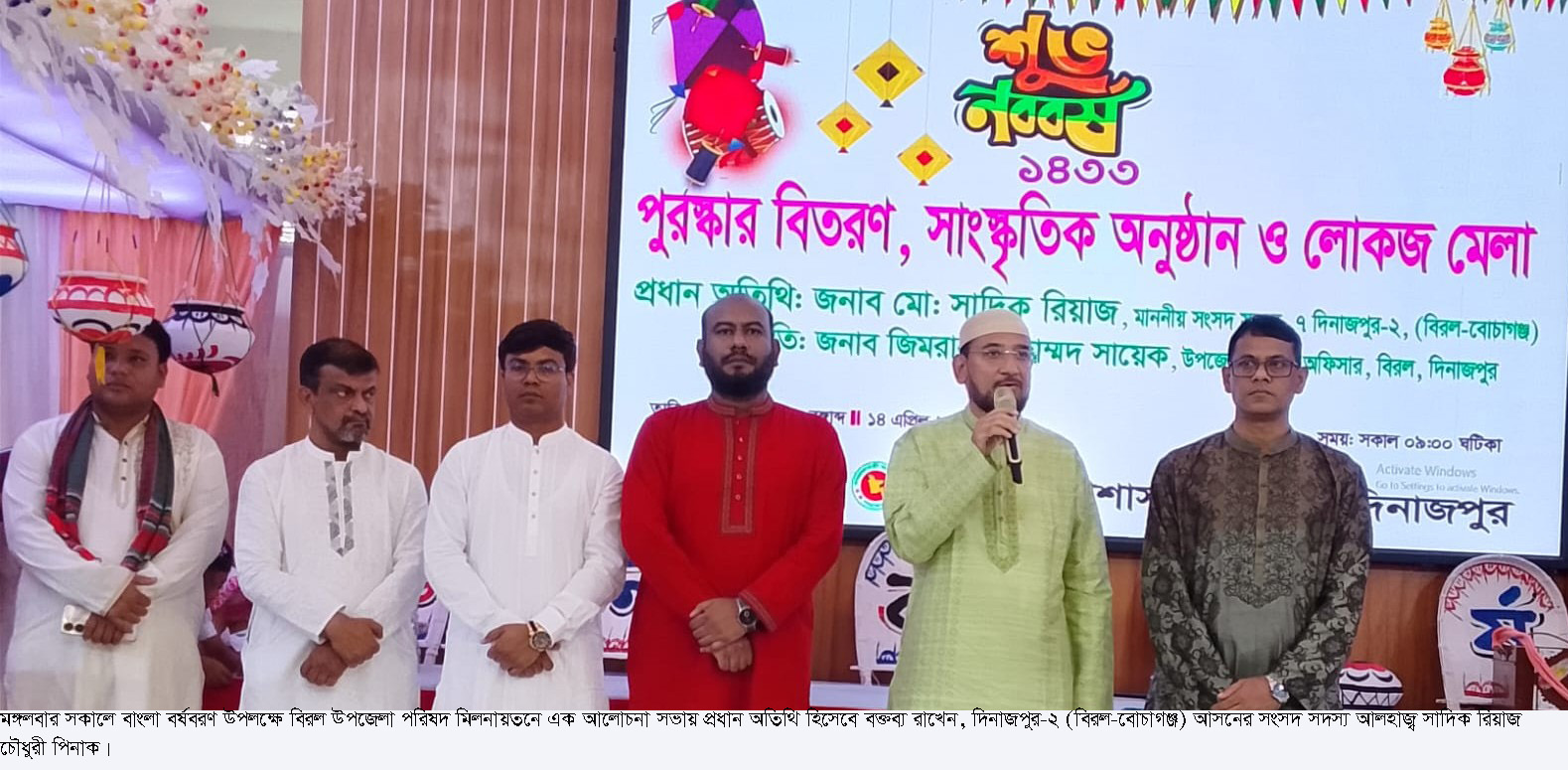 পরে বিরল সরকারি পাইলট মডেল উচ্চ বিদ্যালয়ের ২০২৬ সালের এসএসসি পরীক্ষার্থীদের বিদায় ও নবীন বরণ এবং বার্ষিক ক্রীড়া প্রতিযোগিতা, পুরুষ্কার বিতরন ও সাংস্কৃতিক অনুষ্ঠানে আসনের সংসদ সদস্য আলহাজ্ব সাদিক রিয়াজ চৌধুরী পিনাক বক্তব্য রাখেন।