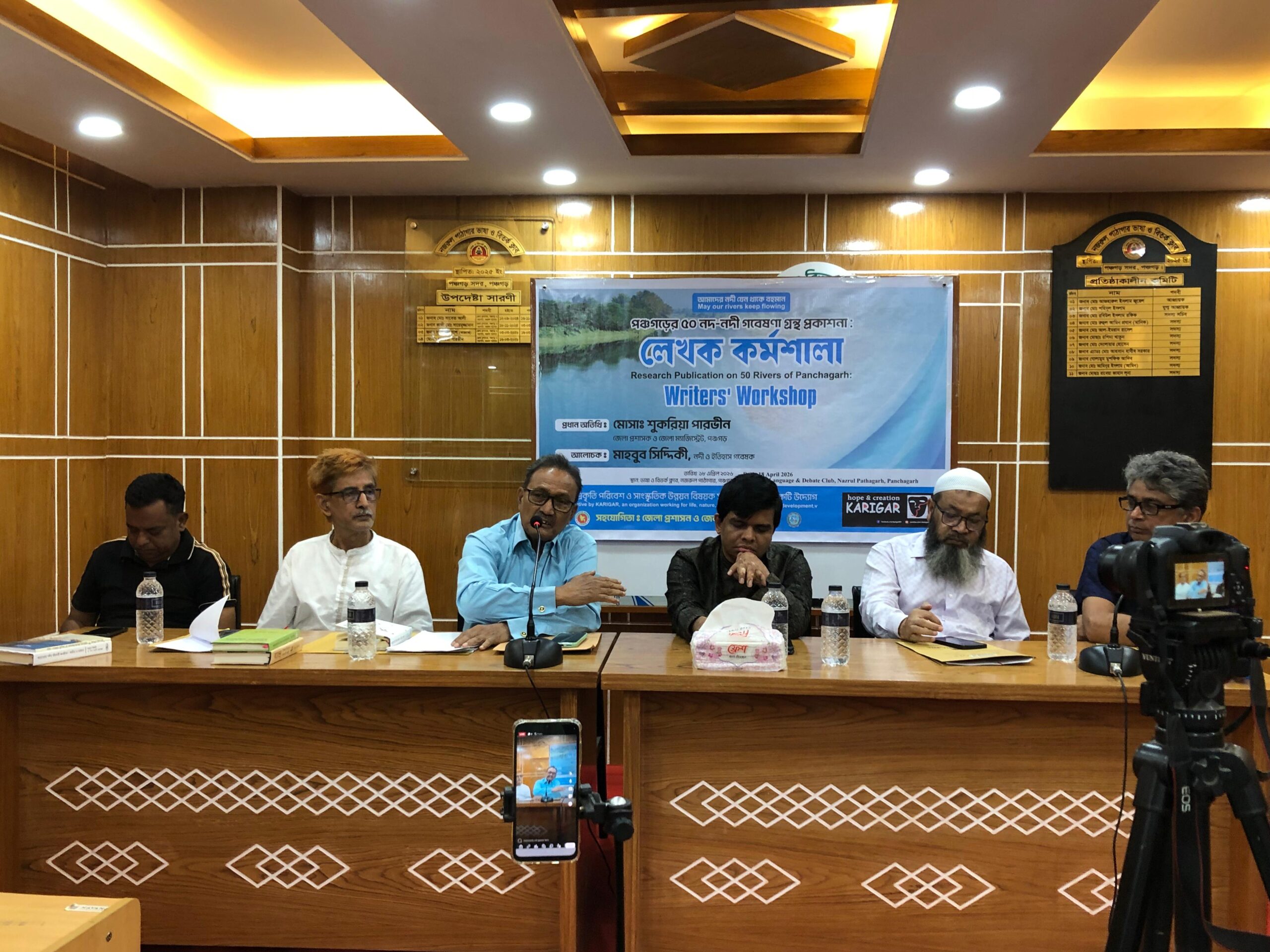 কর্মশালার উদ্বোধন করেন অতিরিক্ত জেলা প্রশাসক সুমন চন্দ্র দাস| কর্মশালায় প্রধান আলোচক হিসেবে বক্তব্য দেন নদী ও ইতিহাস গবেষক মাহবুব সিদ্দিকী| এসময় পঞ্চগড় বরেন্দ্র বহুমুখী উন্নয়ন  প্রকল্পের নির্বাহী প্রকৌশলী ফরিদুল ইসলাম, জেলা শিশু কর্মকর্তা আকতারুজ্জামান, বাংলাদেশ পরিবেশ আন্দোলন (বাপা)’র পঞ্চগড় জেলা শাখার সভাপতি আনোয়ারুল ইসলাম খায়ের, লেখক ও গবেষক শফিকুল ইসলাম প্রমুখ বক্তব্য রাখেন| অনুষ্ঠান সঞ্চালনা করেন কারিগরের নির্বাহী পরিচালক সরকার হায়দার | আয়োজক কতৃপক্ষ জানান এই কর্মশালার মূল উদ্দেশ্য হচ্ছে আমাদের নদী যেন থাকে বহমান| পঞ্চগড়ের নদ নদীগুলোকে সরেজমিনে চিহ্ণিত করা এবং নদ নদনদীগুলোর ইতিহাস, ঐতিহ্য, মিথ, কৃষি সহ অর্থনৈতিক অবদান, নদ নদীর প্রভাবে সভ্যতার ক্রমবর্ধমান বিবর্তন, পরিবর্তনের চিত্র, প্রেক্ষাপট এবং কারণ খুঁজে বের করা| নদ নদীগুলোকে কিভাবে বাঁচিয়ে রাখা যায় তার একটা রুপরেখা এবং প্রস্তাবনা আবিস্কার করা| জেলার লেখক গবেষকদের অংশগ্রহণে এই কর্মসূচী বাস্তবায়নের ফলে নদ নদী সম্পর্কে অনেকগুলো মানুষ সংযুক্ত থাকবে| তাদের ভয়েস ভবিষ্যৎ বাংলাদেশ গড়তে ভূমিকা রাখবে|