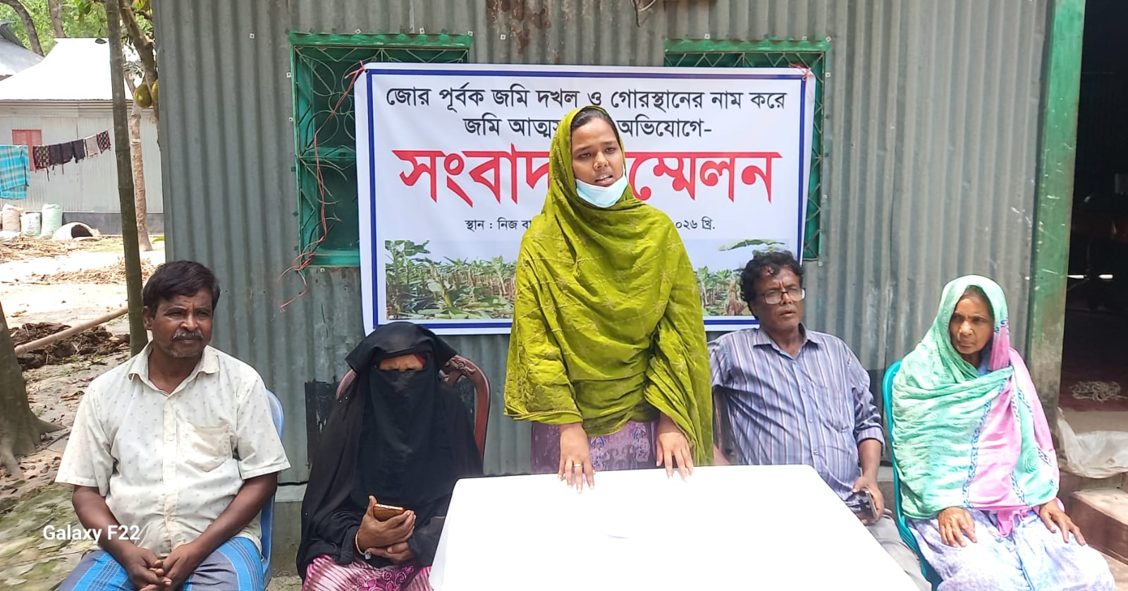 ভুক্তভোগী পরিবার দাবি করে,প্রায় দুই মাস আগে তাদের চাষ করা কলা বাগান নষ্ট করে জমিটিকে গোরস্থান হিসেবে প্রচার করা হয়। বর্তমানে তারা চরম নিরাপত্তাহীনতায় ভুগছেন এবং জমিতে গেলে হত্যার হুমকি পাচ্ছেন বলে অভিযোগ করেন।