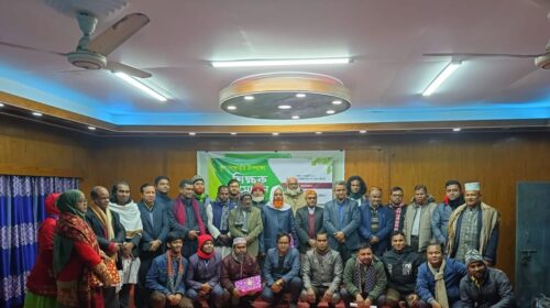 মোঃ জাহেরুল ইসলাম আটোয়ারী(পঞ্চগড়) প্রতিনিধি : ধর্ম মন্ত্রণালয়ের অধীনে ইসলামিক ফাউন্ডেশন কর্তক আয়োজিত হিফযুল কোরআন প্রতিযোগিতায় মোঃ কামরুজ্জামান (১১) নামে এক শিশু শিক্ষার্থী ‘ খ’ গ্রুপে অংশগ্রহণ করে প্রায় শতাধিক প্রতিযোগীকে পেছনে ফেলে সর্বোচ্চ নম্বর পেয়ে জেলা পর্যায়ে প্রথম স্থান অধিকার করেছেন। মোঃ কামরুজ্জামান আটোয়ারী উপজেলার আলোয়াখোয়া ইউনিয়নের বড় সিঙ্গিয়া গ্রামের মোঃ আবুল হোসেন ও সেলিনা বেগম দম্পতির পুত্র। তিনি উপজেলার ‘ বামনকুমার আলহাজ¦ খোষ মোহাম্মদ সরকার নূরানী ও হাফেজিয়া মাদ্রাসা এতিমখানা ও লিল্লাহ বোর্ডিং এর শিশু শিক্ষার্থী। ওই প্রতিষ্ঠানের মোহতামিম হাফেজ মাওলানা মোঃ শাহাজাহান আলী জানান, মোঃ কামরুজ্জামান গত ১৩ জানুয়ারি ইসলামিক ফাউন্ডেশনের আয়োজনে জাতীয় হিফযুল কোরআন প্রতিযোগিতায় ‘খ’ গ্রুপে (১-১০ পাড়া) উপজেলা পর্যায়ে প্রথম স্থান অর্জন করেন। এরপরে গত ২৮ জানুয়ারি জেলা পর্যায়ে ইসলামিক ফাউন্ডেশনের আয়োজনে ২২টি মাদ্রাসার শতাধীক প্রতিযোগী হিফযুল কোরআন প্রতিযোগীতায় অংশগ্রহণ করেন। কামরুজ্জামান শতাধীক প্রতিযোগিকে পেছনে ফেলে সর্বোচ্চ নম্বর পেয়ে জেলা পর্যায়েও প্রথম স্থান অধিকার করে আনুষ্ঠানিকভাবে ক্রেস্ট ও সনদপত্র গ্রহণ করেছেন । প্রতিষ্ঠানের মোহতামিম জানান, শিক্ষার্থীদের মাঝে তিনটি গ্রুপে ভাগ করা হয়েছে। প্রতিযোগিতায় একই শিক্ষা প্রতিষ্ঠান থেকে প্রতিটি গ্রুপে অনধিক পাঁচজন প্রতিযোগি অংশগ্রহণের সুযোগ পাবে। তিনটি গ্রুপের মধ্যে ‘ক’ গ্রুপে তাজবীদসহ পূর্ণ ৩০ পারা হিফজ, (অনুর্ধ্ব ১৮ বছর ছাত্র), ‘খ’ গ্রুপে তাজবীদসহ ২০ পারা হিফজ(অনুর্ধ্ব ১৫ বছর ছাত্র)ও ‘গ’ গ্রুপে তাজবীদসহ ১০ পারা হিফজ (অনুর্ধ্ব ১২ বছর ছাত্র)। কামরুজ্জামান এবার বিভাগীয় পর্যায়ে প্রথম স্থান অর্জনের প্রস্তুতি নিচ্ছে। কামরুজ্জামানের বাবা আবুল হোসেন বলেন, সবই আল্লাহর রহমত ,আমার সন্তানের চেষ্টা আর শিক্ষকদের অবদান। শিশু শিক্ষার্থী মোঃ কামরুজ্জামান (১১) সবার কাছে দোয়া কামনা করেছেন।