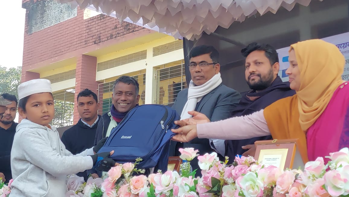 পঞ্চগড় প্রতিনিধি: পঞ্চগড়ের বোদা উপজেলায় ১২ টি শিক্ষা প্রতিষ্ঠানের একহাজার ২৮০ শিক্ষার্থীদের নিয়ে ‘শীত আনন্দ উৎসব’ অনুষ্ঠিত হয়েছে। এ উৎসবে শিক্ষার্থীদের মাঝে শীতের পোশাক, স্কুলব্যাগ ও বিভিন্ন শিক্ষা উপকরণ বিতরণ করা হয়। শুক্রবার (৯ জানুয়ারি) দুপুরে বোদা উপজেলার পাঁচপীর সরকারি প্রাথমিক বিদ্যালয় মাঠে স্বেচ্ছাসেবী সংগঠন শিশুস্বর্গ ফাউন্ডেশন এই শীত আনন্দ উৎসবের আয়োজন করে। এতে সহযোগিতা করে ওষুধ প্রস্তুত ও বিপণনকারী প্রতিষ্ঠান এভারেস্ট ফার্মাসিউটিক্যালস লিমিটেড। অনুষ্ঠানে প্রতিটি শিশুর হাতে একটি করে হুডি, উন্নতমানের স্কুলব্যাগ, খাতা-কলমসহ বিভিন্ন শিক্ষা উপকরণ তুলে দেওয়া হয়। পাশাপাশি শিশুদের জন্য ডিম ও মুরগির মাংস দিয়ে গরম খিচুড়ির আয়োজন করা হয়। এটি ছিল শিশুস্বর্গ ফাউন্ডেশনের চতুর্থ আয়োজন। এর আগে বোদা উপজেলার তেপুকুরিয়া উচ্চ বিদ্যালয়ে ১৮টি শিক্ষা প্রতিষ্ঠানের ১ হাজার ৭২৪ জন, পঞ্চগড় উচ্চ বিদ্যালয়ে ১৬টি শিক্ষা প্রতিষ্ঠানের ১ হাজার ৮৬০ জন এবং পঞ্চগড় সুগার মিল মাঠে ১৩টি শিক্ষা প্রতিষ্ঠানের ১ হাজার ৩২০ জন শিশুর হাতে শীতের উপহার তুলে দেওয়া হয়। এভাবে জেলার পাঁচটি ভেন্যুতে মোট সাড়ে সাত হাজার শিশুকে নিয়ে এবারের শীত আনন্দ উৎসব আয়োজন করা হয়। অনুষ্ঠানে শিশুস্বর্গ ফাউন্ডেশনের প্রতিষ্ঠাতা কবির আহমেদ আকন্দ স্বাগত বক্তব্য দেন। পাঁচপীর সরকারি প্রাথমিক বিদ্যালয়ের ভারপ্রাপ্ত প্রধান শিক্ষক নাদিরা ইয়াসমিনের সভাপতিত্বে অনুষ্ঠানে আরও বক্তব্য দেন পঞ্চগড় চেম্বার অব কমার্স অ্যান্ড ইন্ডাস্ট্রির পরিচালক রায়হানুল আনম প্রধান রিয়েল এবং বিশিষ্ট সমাজসেবক হুমায়ুন কবীর লায়ন। শিশুস্বর্গ ফাউন্ডেশনের প্রতিষ্ঠাতা কবির আহমেদ আকন্দ বলেন, আজ এক হাজার ২৮০ জন শিশুকে শীতের পোশাক, শিক্ষা উপকরণ, স্কুলব্যাগ ও দুপুরের খাবার দেওয়া হয়েছে। পাঁচটি আয়োজনের মাধ্যমে মোট ৭ হাজার ৫০০ শিশুকে এই উপহার দেওয়া হচ্ছে। মূলত সুবিধাবঞ্চিত ও দরিদ্র শিশুদের শীতকালে যেন পড়াশোনায় ব্যাঘাত না ঘটে, সে লক্ষ্যেই আমাদের এই আয়োজন।
