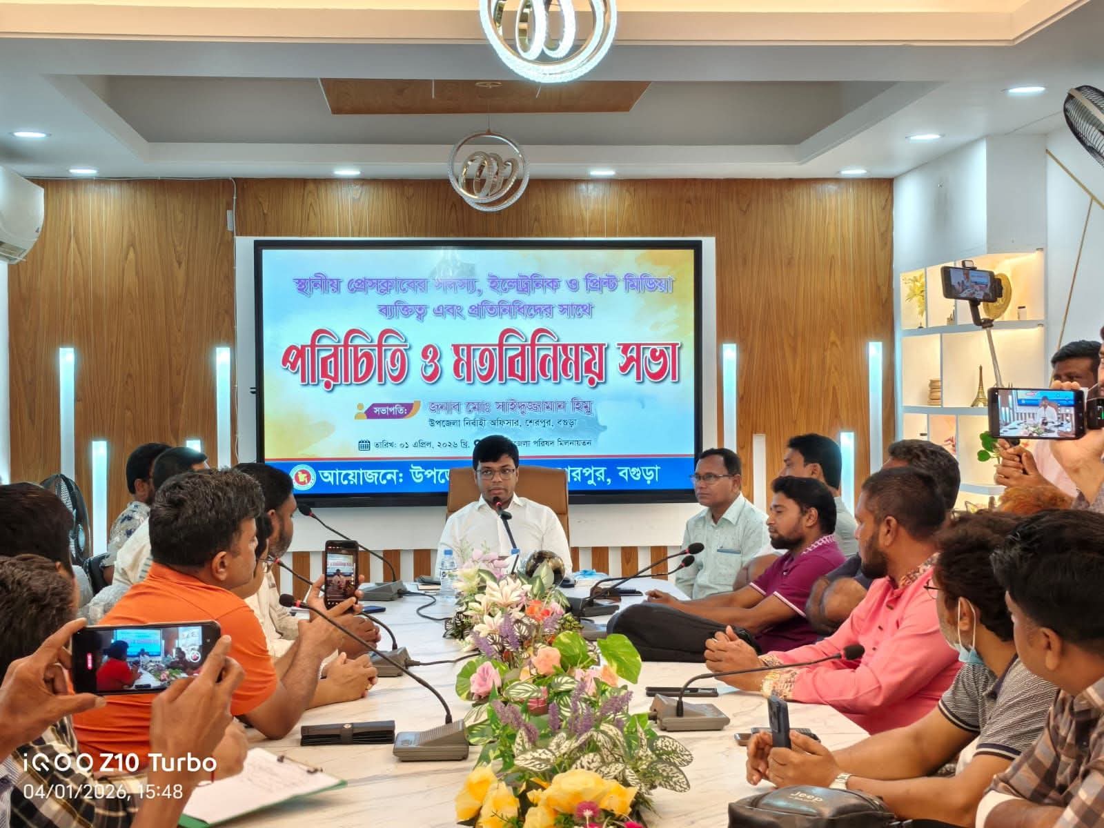 বাদশা আলম, বগুড়া প্রতিনিধি- বগুড়ার শেরপুরে স্থানীয় পর্যায়ে কর্মরত গণমাধ্যমকর্মীদের সাথে পরিচিতি ও মতবিনিময় সভা করেছেন নব যোগদানকৃত উপজেলা নির্বাহী কর্মকর্তা (ইউএনও) সাইদুজ্জামান হিমু। বুধবার (১ এপ্রিল) বিকাল সাড়ে তিনটায় উপজেলা পরিষদ মিলনায়তনে এ সভা অনুষ্ঠিত হয়।